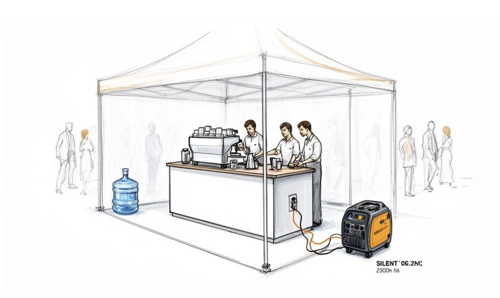 Voor dit soort situaties hebben we een simpele oplossing: we regelen een stille aggregaat. Deze moderne generatoren zijn speciaal ontworpen om zo min mogelijk geluid te maken. Je merkt er bijna niets van, zodat de sfeer van je evenement niet wordt verstoord. Een gebrek aan stroom hoeft de perfecte koffie-ervaring dus zeker niet in de weg te staan.