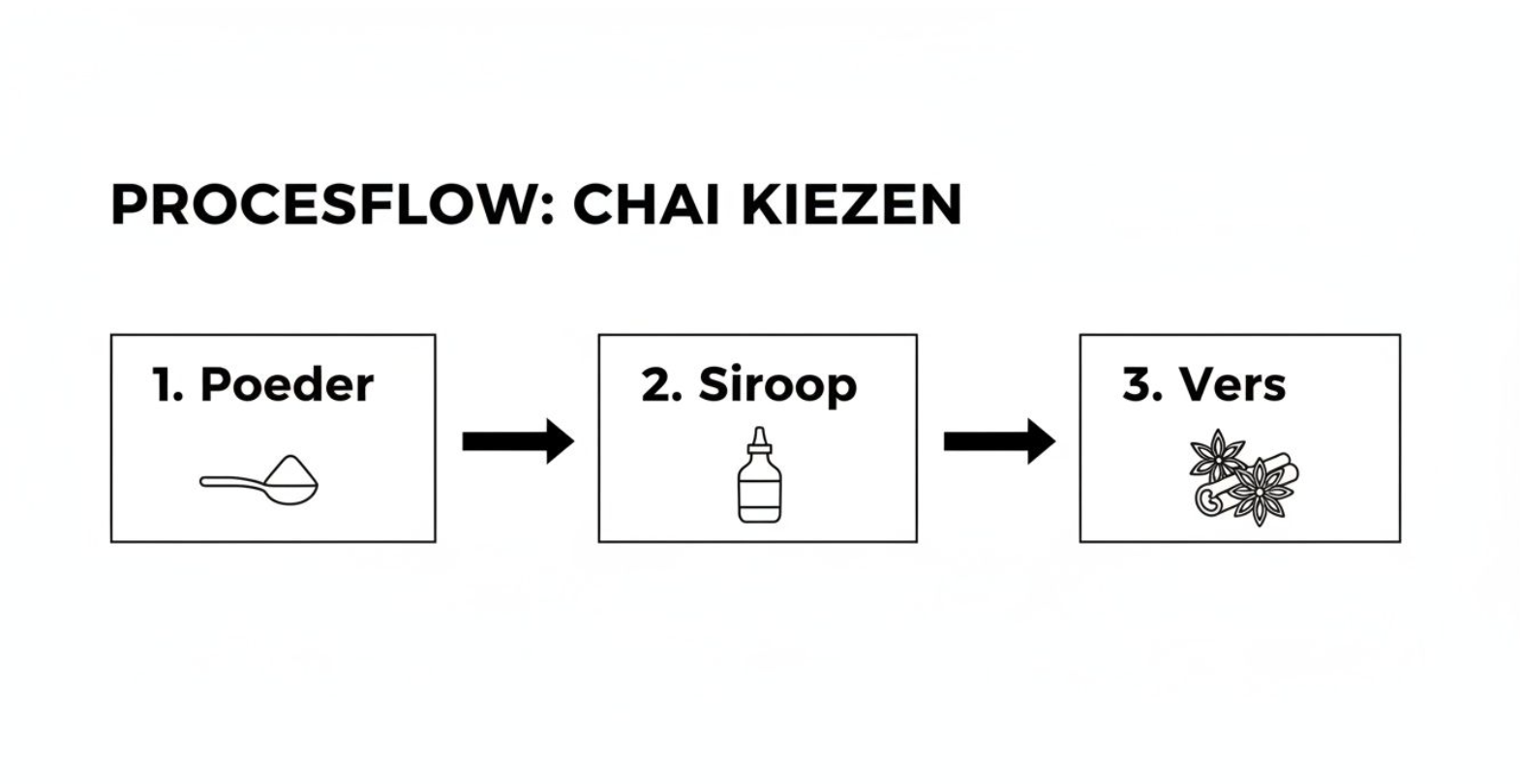 Bij Barista Station werken we met een strak recept voor consistente topkwaliteit. We starten met 1 schepje (ca. 12 gram) Chalo Masala Chai poeder, opgelost in 2/3 deel kokend water (zo'n 150 ml), 30 seconden roeren. Daarna voegen we 1/3 deel (100 ml) opgestoomde melk toe. Een leuk feitje: in Nederland kiest maar liefst 58% van de gasten op events voor havermelk. We stomen de melk 15 seconden op voor perfect microschuim, wat resulteert in een romige latte van 220-250 ml. Wil je meer weten, kijk dan eens naar dit award-winnende chai recept.
